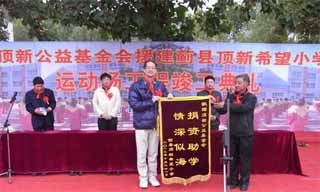 顶新希望小学王学文校长代表全校师生向顶新基金会回赠了感谢锦旗,上书“捐资助学...