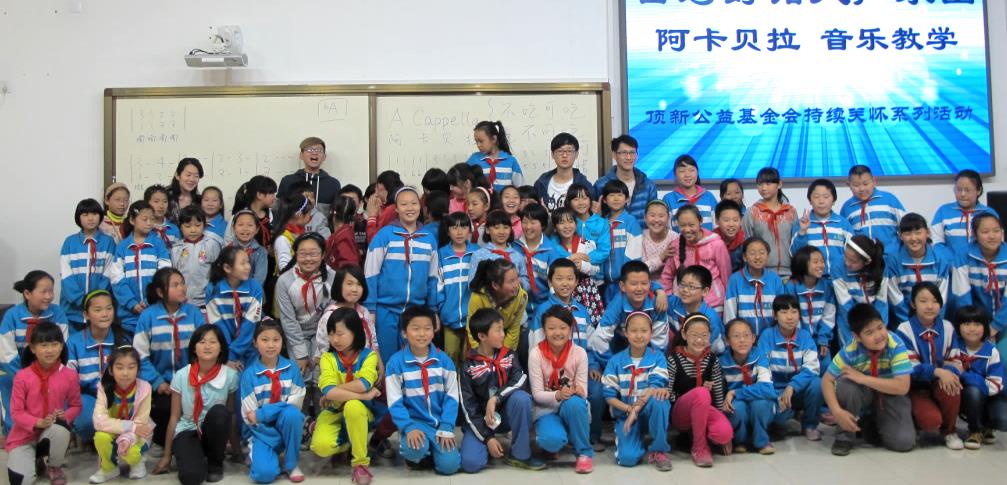 2014年10月29日,来自台湾的阿卡贝拉蓝色警报乐团五位老师,与基金会一起赴北京延庆西屯小学展开阿卡贝拉音乐互动课程,带领基金会持续关怀学校的小学生唱阿卡贝拉音乐,让小朋友可以从歌声中了解音乐的美好。