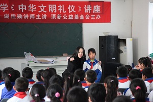 (2)3月28日,基金会在门头沟坡头小学、龙门小学两所学校举办了主题为中华文明礼仪的交流讲座,特别邀请来自台湾的著名礼仪讲师谢佳勋老师来到学校, 与同学们互动并引导他们积极主动地学习,检验了同学们前期中华文明礼仪学习的成果,同时丰富了教师们品格教育的教学方式与方法。