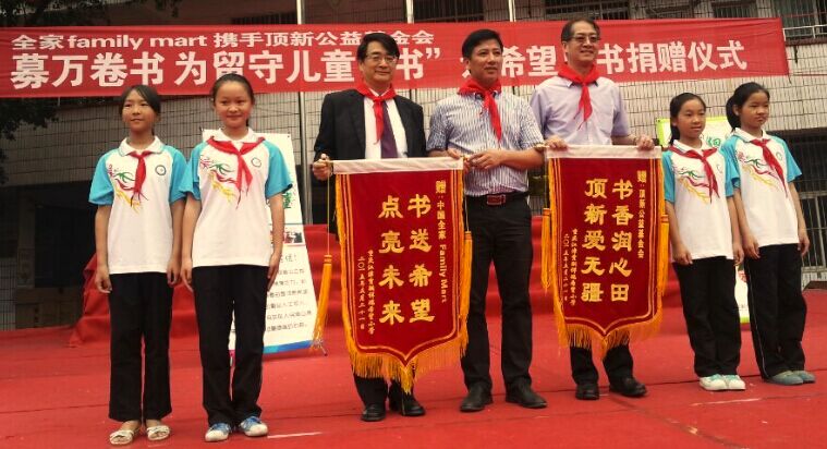 2015年5月21日上午10点,由全家便利发起、顶新公益基金会支持的“募万卷书为留守儿童书送希望图书捐赠仪式”在重庆贾嗣祥瑞希望小学操场举行。