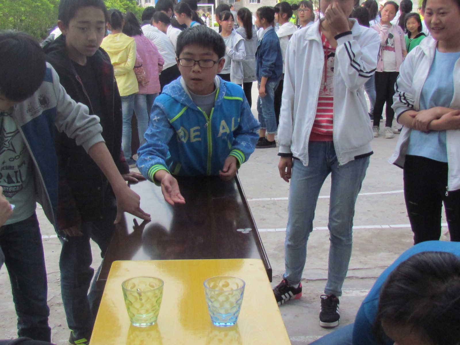 在同学们的热情邀请下,顶新的志愿者们也加入其中,与同学们开始了胜利的“争夺”。笑声、助威声、呼喊声一次次的在校园内响起,同学们的脸上洋溢着灿烂的笑容,看起来是那么的快乐。